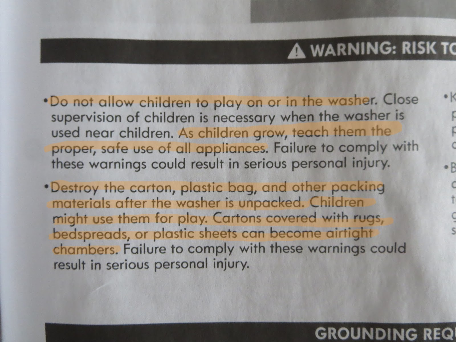 „Non permettere ai bambini di giocare sopra o dentro la lavatrice”.